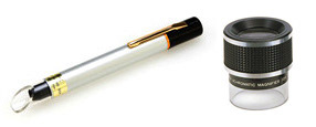 肉眼では上記のように見えませんが、印刷会社では下図のようなルーペを使って印刷の品質を確認しています。