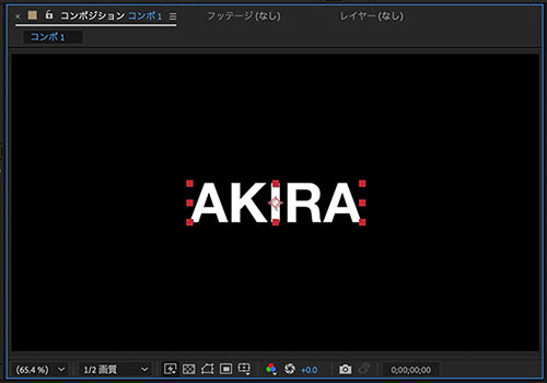 ・テキストレイヤ―のスケールのキーフレーム全てを選択した上でコピー(Cmd+C)する