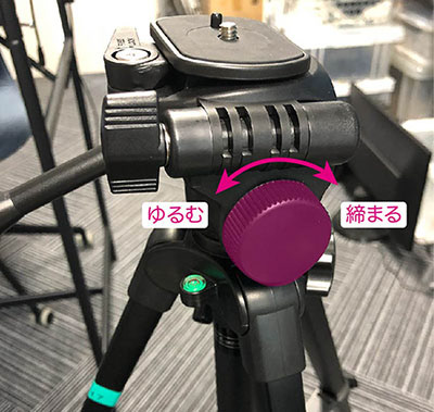雲台下のパイプを回してゆるめる。